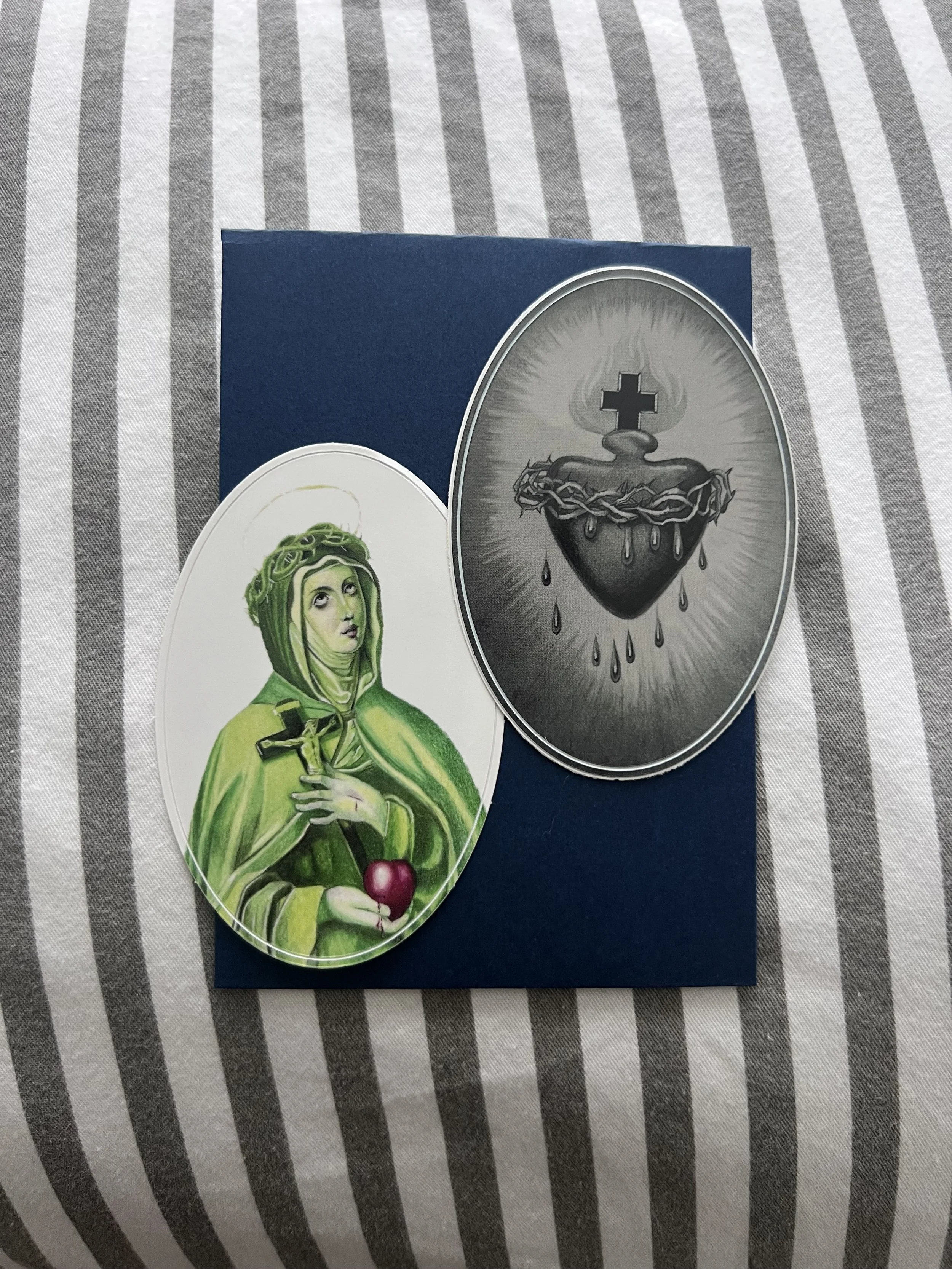 Stickers & Prints Sacred sticker pack $10.00 St. Clare Sticker $8.00 St. Clare $25.00 Christ with Crown of Thorns $25.00 Sacred Heart Print $25.00 Sacred Heart Sticker $8.00 Nyphms and Satyr Print $25.00 I know what I saw! $25.00 Nymphs and Satyr - Note Cards $10.00 Pin Up Portrait $25.00 Sacred Heart $35.00 St. Jerome $25.00 SZA Print $25.00 Sold out
